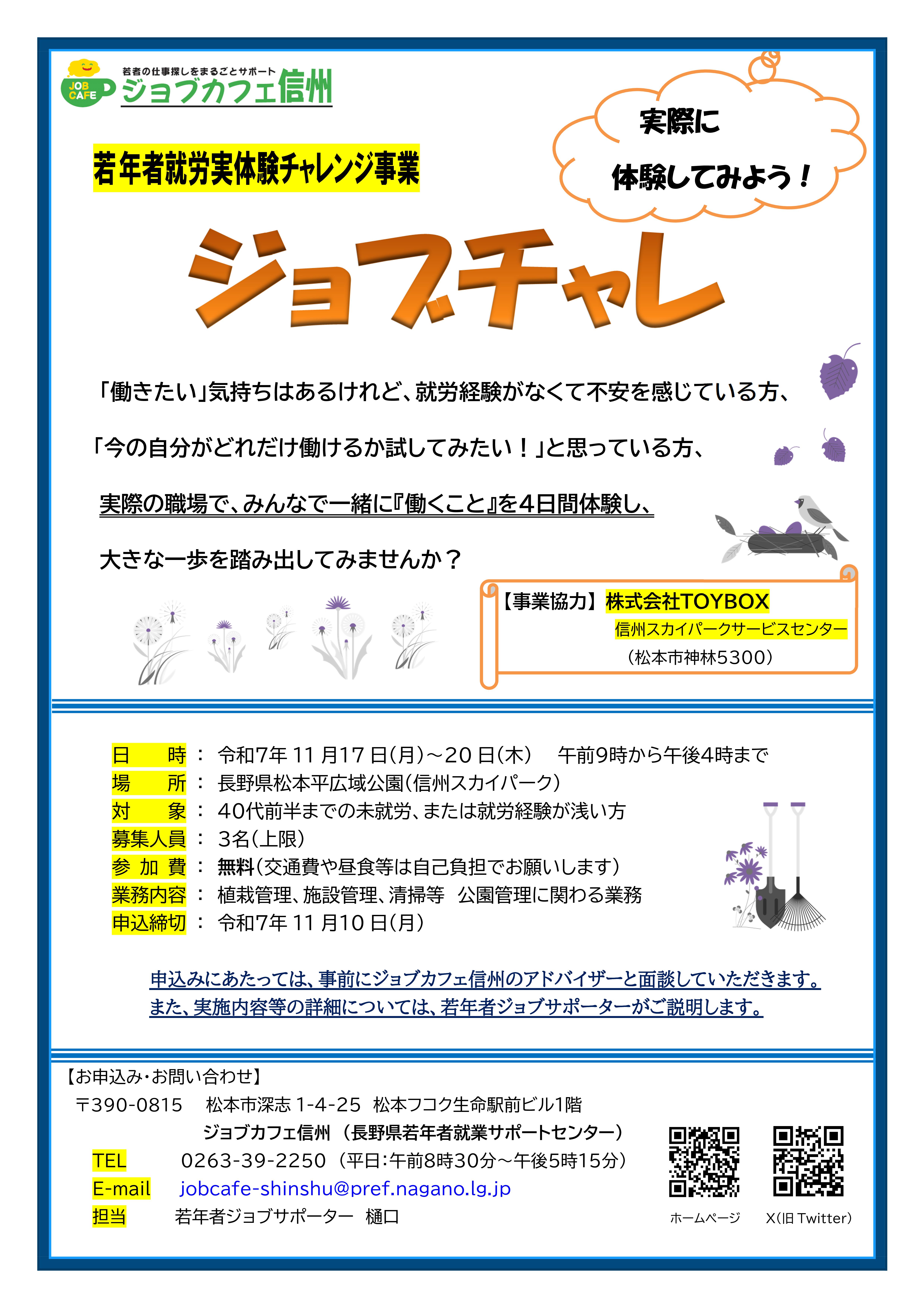 | 参加対象 | 就労経験がない、または就労経験の浅い44歳以下の無業者 |