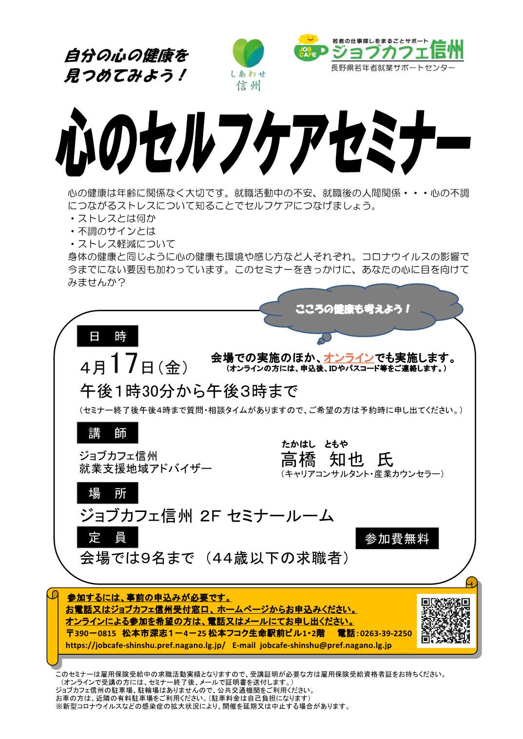 | 関連ファイル | [PDF] 心のセルフケアセミナーに関連する資料 |